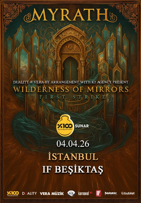 - %100 Metal İftiharla Sunar: Blazing desert metal olarak tanımlanan tarzıyla Doğu ve Batı sentezini başarıyla yapan Myrath, 4 Nisan 2026'da IF Beşiktaş'ta!
